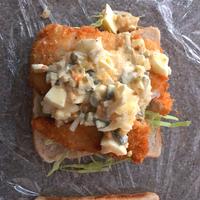 - 準備 ・タルタルソース用のゆで卵を作っておきます。 ・衣用の卵を溶いておきます。 ・揚げ油を180℃に温めておきます。 ・食パンは焼いておきます。