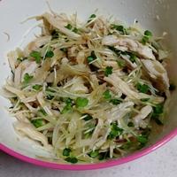 今回はかいわれ大根などを使用しましたがお好みの野菜を使用してください。 鶏むね肉は鶏ささみでも代用できます。