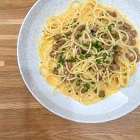 「納豆カルボナーラ」の作り方を簡単で分かりやすいレシピ動画で紹介しています。