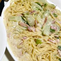 白菜とベーコンのクリームパスタ レシピ・作り方