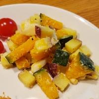 「コロコロさつまいもとかぼちゃのカッテージチーズサラダ」の作り方を簡単で分かりやすいレシピ動画で紹介しています。