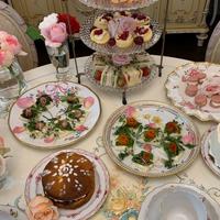 左側手前です。粉糖を薔薇に飾りました。アフタヌーンティーパーティーに、外せません。