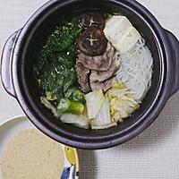 - 8 野菜に火が通ったら牛ロースを1枚ずつ入れて中火で煮ます。火が通ったら6やポン酢ダレにつけてお召し上がりください。