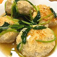 前日のお鍋で残った干し椎茸入りの鶏団子と、別の献立で余った溶き卵を入れました。とろみのあるお出汁が、汁物の役目も果たしてくれる一品です。ごちそうさまでした。