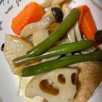 ゴボウが無かったけど。簡単にサッパリした煮物が出来ました。倍量作ったのですが、ちょっと薄味だったのでポン酢を少し加えました。彩りに冷凍のさやいんげんを入れました。時間が経って色が悪くなったけど…