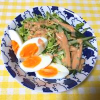 酢をりんご酢にして、レモン汁とウスターソースでフルーティーなドレッシングになりました。めちゃうまー