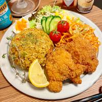 ピラフは別レシピの「激辛カレーピラフ風」に変更。