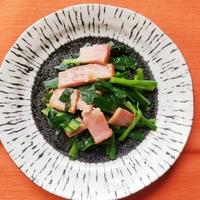 こんがりと焼いたベーコンとニラを炒め合わせ、塩と粗挽き黒こしょうで味つけをしました。さっと簡単にお作りいただけますので、何か一品欲しい時にも便利ですよ。ぜひお試しください。