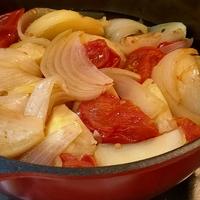 トマトの酸味と野菜の甘みが溶け合い、あっさりとした味わいが特徴的な一品です。ジャガイモは煮崩れを防ぐため大きめにカットするのがコツ。豚バラやロース肉、牛肉など好みのお肉で作れます。黒コショウを効かせると味がキリッと引き締まり、さらに美味しくなります。汁気が多めで、リゾット風やスープ仕立てにアレンジしても楽しめる万能レシピです。
