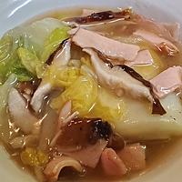 無水鍋を使ってるので水の量は少なめにしてベーコンがなかったのでハムで代用~椎茸もあったので入れたらおいしかったです。鶏ガラスープじゃなくて中華スープで作りました。優しい味で餅好きな旦那は満足でした。レパートリー増えました。