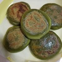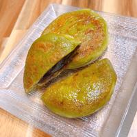 生地が分厚くなって中の方まで火が通ってなさそうだったから、蒸し器で蒸した後、オーブントースターで焼いた。抹茶の苦さと小豆の甘さの組み合わせがよかったと思う。
