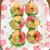 お雛祭りの時の五目ちらし、いっつも同じで飽きていましたが…ドーナツ型以外に牛乳パックで押し寿司も作りました
