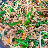 - 5 熱したフライパンにごま油をひいて、中火で4を炒めます。牛肉に火が通り、野菜がしんなりしたら火を止めます。