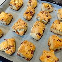 - 6 生地を約3センチの厚さにのばし、抜き型で抜き、天板に並べて表面に溶き卵(分量外)を塗り、200度に予熱したオーブンで15〜20分焼きます。