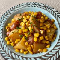 じゃがいもとコーンのかりっと香ばしい炒め物のご紹介です。どちらも香ばしく炒めることで食感も香りもよく、しょうゆも加わり、ついついお箸が止まらない美味しさですよ。ご飯にもパンにも、お酒のおつまみにもなりますので今晩のおかずにぜひ、お試しくださいね。