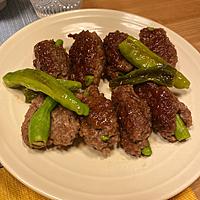 ししとうをまるごと、挽き肉で包んだ一品です。結構ボリュームが有るので、このひと品でも満足できます。おかずにはもちろん、お酒のおつまみにもおすすめです。 めんつゆで味付けをしているのでとても簡単ですよ。ぜひお試しくださいね。