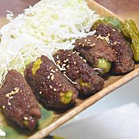 タネが少なかったのか、焼くとお肉が縮んでししとうが少し出てきてしまいました。