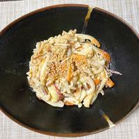 - 5 お皿に盛り付け、白いりごまをかけて完成です。
