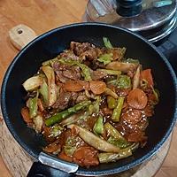 エリンギとアスパラ時短お値打ちスーパーの味付け焼き肉半額利用にアレンジ ニンジン中1本 アスパラ6本 エリンギ3本 キャベツ6枚ちぎり 味付け牛肉300g アスパラの軸を茹でてから投入 ニンジン、エリンギは牛脂で焼く、味付け肉は焦げるから途中で入れます アスパラの先をいれて、キャベツで肉の上に乗せ蓋をして中火で5分 混ぜて水分を飛ばし仕上げ 1分~2分焼いてある程度水分が蒸発すれば出来上がり