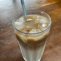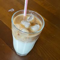 お店のアイスカフェラテだ〜👏我流でテキトーに作った時は牛乳が少なかったんだな〜。エスプレッソのインスタントどこかに売ってるかしら。これからは家で飲む!