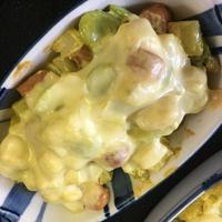 じゃがいも、そら豆、ウインナーを使ったチーズ焼きのご紹介です。ピリ辛カレー味が食のすすむ一品となっています。ブロッコリーやカリフラワーやベーコンなど、具材を変えても美味しいですのでぜひ試してみてくださいね!