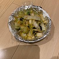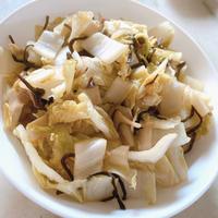 - 4 白菜がしんなりしたら塩昆布、しょうゆを入れ中火で炒めます。
