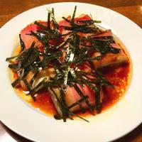 - 5 お皿に盛り、しょうゆをかけ、2とのりを乗せて、白いりごまをふったら完成です。
