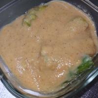 アスパラ5本、すりごまはレシピ通り大1、味噌・砂糖・酒は半量で個人的に丁度いい。アスパラはレンチン後ペーパーで軽く水分を取った。酒感が少しだけ気になった✏️