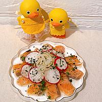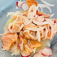パクチー香る、サーモンと玉ねぎのマリネのご紹介です。はちみつを使った優しいおいしさのマリネですよ。ラディッシュで可愛く盛り付けて、おもてなしにもおすすめな一品です。サーモンはスモークサーモンでもおいしいですよ。