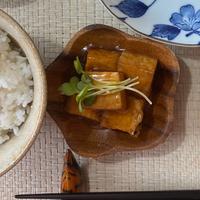 とっても簡単なおかずのご紹介です。厚揚げをごま油で炒め、甘辛く味付けました。ニンニクの香りと鷹の爪のピリリとした辛さがアクセントとなり、お箸が進んでしまいます。お酒のおつまみにもオススメです。ぜひ、お試し下さい。
