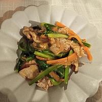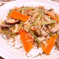 ごはんは別にしてアレンジして作りました。具材→豚こま肉180、小松菜、にんじん。調味料→水150、醤油・酒・オイスターソース 各小さじ2、砂糖・鶏がらスープの素 各小さじ1、生姜チューブ少々。