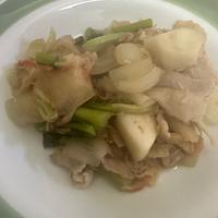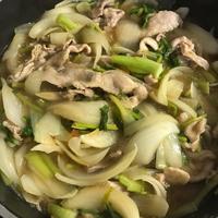 - 5 豚バラ肉に火が通ったら中火のまま、1と2を入れ炒めます。