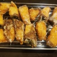 - 3 鍋底から3cmの高さまで油を注ぎ、180℃まで温めたら2をきつね色になり、火が通るまで5〜10分程揚げ、油を切ります。