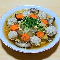 白菜追加しました。鶏団子は想像より簡単です。生姜ちょっと入れすぎたかな?