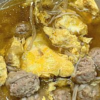 - 6 調味料の材料を入れ蓋をして弱火で5分煮込み、鶏団子に火が通ったら、溶き卵を流し入れ、火を止めて再度蓋をします。