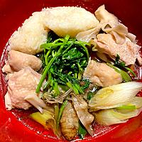比内地鶏のダシが効いた上品な味わいのスープに、ゴボウの風味と香り高いセリの組み合わせが絶妙です。きりたんぽは片栗粉を加えて握ることで、最後まで形が崩れにくく仕上がります。具材は舞茸やしめじなどのきのこ類も相性抜群。あっさりとした中にも深い旨味が広がり、寒い季節にぴったりの一品です。セリは水菜や春菊で代用しても美味しく楽しめます。