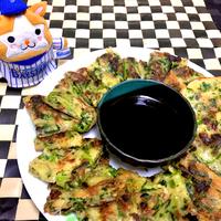 ちぢみほうれん草が冷蔵庫にあって、シャレでチヂミと検索したら載っていました😁ジャコに納豆もありバッチリ完成❣️美味しい🌈💙