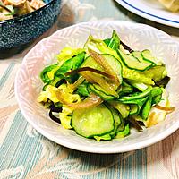 カニカマは無しですがさっぱりして美味しかったです。オイリーな主菜に合わせるため、ごま油の代わりに白ごまを使いました。