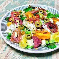 梨のサラダは初めてですが、チーズや生ハムといった塩気のあるものとの組み合わせが合いますね。香り良く酸味の効いたドレッシングが美味しかったです。