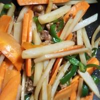 千切りにし、水にさらした上で炒めました。