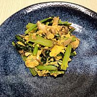 他の方のコメントも参考にして、調味料を少し多めにして卵も入れました。小松菜の苦味がマイルドになって美味しかったです。