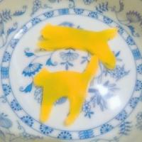- 2 ゼラチンをオレンジジュースでふやかします。