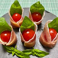 いつものおなじみの食材ミニトマトに、生ハムでおしゃれに手を加えた「ひとくちカプレーゼ風」のご紹介です。今回はスライスチーズを使用していますが、もちろんモッツァレラチーズでもおいしく作れます!ぜひお試しください!