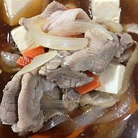 - 3 肉に火が通ったら、にんじん、ねぎ、豆腐を加え落し蓋をして10分煮詰めます。