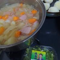 - 準備 じゃがいもは皮をむき、芽を取っておきます。 にんじんは皮をむいておきます。