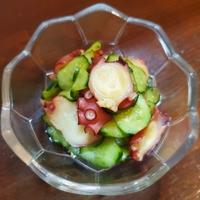 タコ102g、きゅうり1本、乾燥ワカメひとつまみ。薄口醤油は無かったので通常醤油で調味料そのままで美味しく出来ました。冷蔵庫で5分くらい寝かせたらより美味しかった。