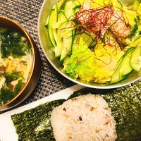 暑くて火🔥を使わずレンジで鶏肉も加熱しました。鷹の爪も入れピリ辛でさっぱり美味しかった🍴😃✨