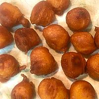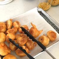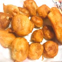 - 4 鍋に揚げ油を4cmの高さになるまで注ぎ、170℃に熱したら、3をひとつずつ入れ、5分ほど揚げます。揚げ色がついたら油を切ります。