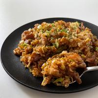 - 5 1、2を加えて中火で炒め合わせ、焼きそば麺がほぐれ、全体に馴染んだらごはんを加えて中火で2分程、炒め合わせます。