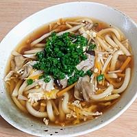木耳と長ネギ入れました。なめ茸を多めに入れたので片栗粉は半分で。出汁と卸し生姜を入れて好みの味。うどんはレンチン。